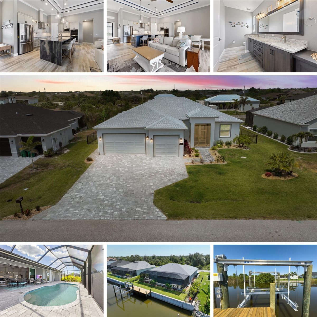 Waterfront Dream Home – Custom-Built “M Merlot” Welcome to the M Merlot, a one-of-a-kind, custom-built Florida waterfront dream home. Perfectly positioned with rear western exposure, this stunning residence offers breathtaking sunsets over the Gulf-accessible Long Branch Waterway. Every detail has been carefully curated to exceed even the highest expectations. Exterior Features Elegant paver driveway, oversized 3-car garage (25 ft deep) with epoxy flooring, Irrigation system sourced directly from the canal, Full gutter system for optimal drainage, Screened-in, heated PebbleTec® saltwater pool with outdoor shower, Concrete 10ft high seawall for long-term waterfront protection Fenced-in rear yard, brand new dock and boat lift currently being installed. Expansive lanai featuring: Brand-new summer kitchen with built-in grill, sink, refrigerator, and hood vent Mounted flat-screen TV for outdoor entertaining, Electric hurricane screens for both storm protection and shade, Screened-in front porch for additional outdoor living, Interior Highlights: Walking through the grand entry you will immediately notice the 10-ft high x 15-ft wide hurricane-rated glass door sliders (with Remote-controlled electric shades both in the living room and primary suite) with Unobstructed panoramic views of the pool and waterway, all windows with wooden blinds, a Chef’s Kitchen with Double ovens GE Profile stainless steel appliances (5 burner induction cooktop) Two-tone custom cabinetry Exotic waterfall granite countertops Spacious & Elegant Living Durable porcelain tile flooring throughout 12-ft ceilings in main living areas with double step-ups to 13-ft tray ceilings in the great room, 9.4-ft ceilings in all bedrooms for added comfort and space Spa-Inspired Bathrooms Master bathroom includes: Dual shower systems with rain heads (all bath room have elegant rain head showers) and Upscale finishes for a spa-like experience Thoughtful Storage & Utility Custom wood shelving in all closets Spacious laundry room with matching custom wood shelving LG washer and dryer, Handpicked luxury light fixtures and paddle fans throughout. Spray foam insulation in the attic to improve energy efficiency This home is more than just a place to live — it's a lifestyle. Whether you're relaxing in your saltwater pool, entertaining on the lanai, or heading out on the boat from your private dock, the M Merlot is the perfect coastal retreat.